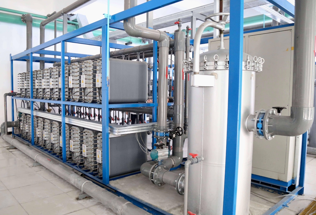 1. 水进入纯化系统,主要部分流入树脂 / 膜内部,而另一部分沿模板外侧流动,以洗去透出膜外的离子。